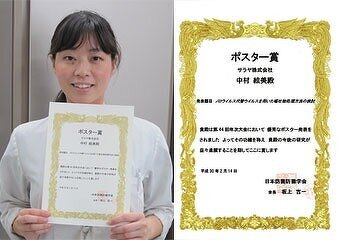 演題「ノロウイルス代替ウイルスを用いた嘔吐物処理方法の検討」で受賞しました。