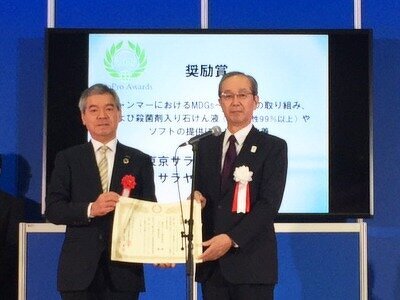 ミャンマーにおけるMDGs~SDGsへの取り組み、および殺菌剤入り石けん液(生分解性99%以上)やソフトの提供による衛生改善が評価され、