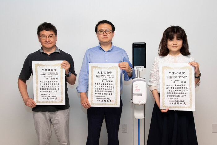 「プロテゲート」 サーマルカメラ付き顔認証 手指消毒連動ディスペンサーシステムの開発技術が評価されました。