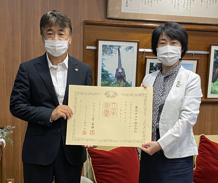 東京都における社会福祉、保健衛生および医療に関する行政に役立てる新型コロナウイルス感染症対策への貢献が認められ、東京サラヤ株式会社が受章しました。