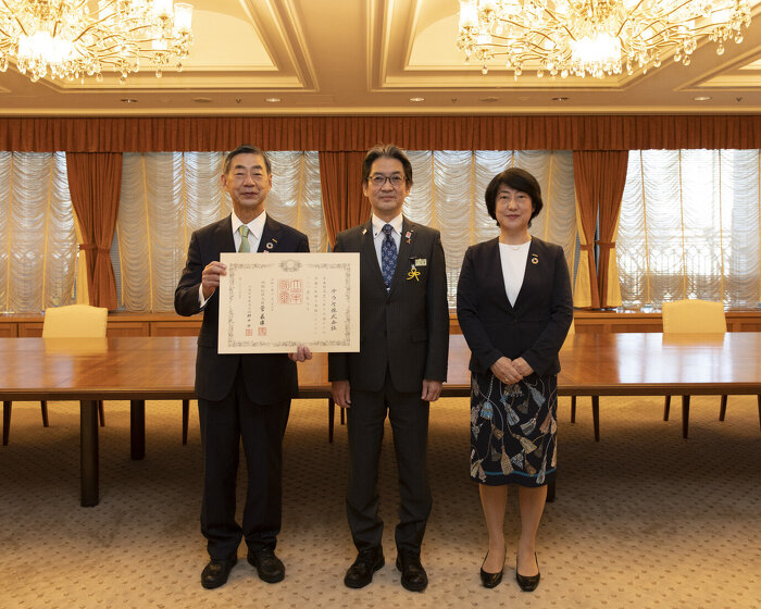 三重県熊野市の産業復興及びまちづくり推進への貢献が認められ、サラヤ株式会社が受章しました。