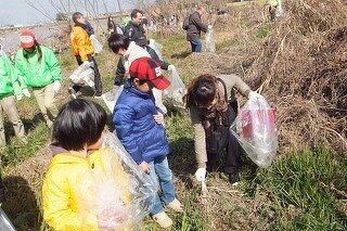 大阪府主催で毎年3月に行われる河川清掃『大和川・石川クリーン作戦』には、大阪工場をはじめ、本社から多くの社員と家族が参加しています。