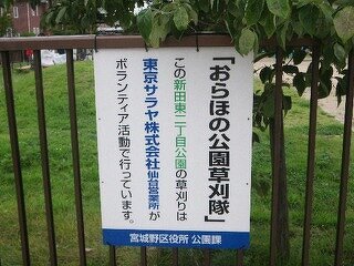 サニテーション事業本部 東北支店では、仙台市のボランティア活動『おらほの公園草刈隊』※に登録し、近くの「新田東二丁目公園」で年に2回、草刈りのボランティア活動を実施しています。当活動は、公園を市民が誰でも気軽に遊べる魅力ある公園として維持するための活動です。