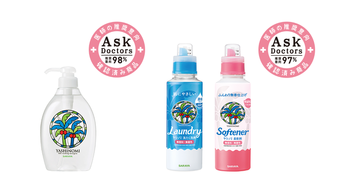 サラヤ株式会社(本社:大阪/代表取締役社長:更家悠介)は、エムスリー株式会社(以下エムスリー)が提供する「AskDoctors評価サービス」の結果、ヤシノミ洗剤 野菜・食器用、ヤシノミ洗たく洗剤・ヤシノミ柔軟剤が「医師の確認済み商品」として認定されましたことをお知らせいたします。