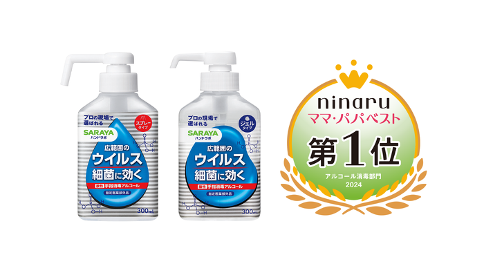 サラヤ株式会社(本社:大阪/代表取締役社長:更家悠介)は、先輩ママが実際に使ってみて本当に良かったものを「満足度」で選出する「ninaruママパパベスト2024」において、『ハンドラボ 手指消毒剤』が消毒部門でNo.1を受賞しましたことをお知らせいたします。