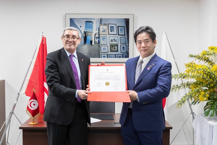 また、在大阪チュニジア共和国名誉領事就任・在大阪チュニジア共和国名誉領事館開設に合わせ、アハメッド・シャッフラ駐日チュニジア共和国大使より、2024年2月19日に任命書が授与されました。