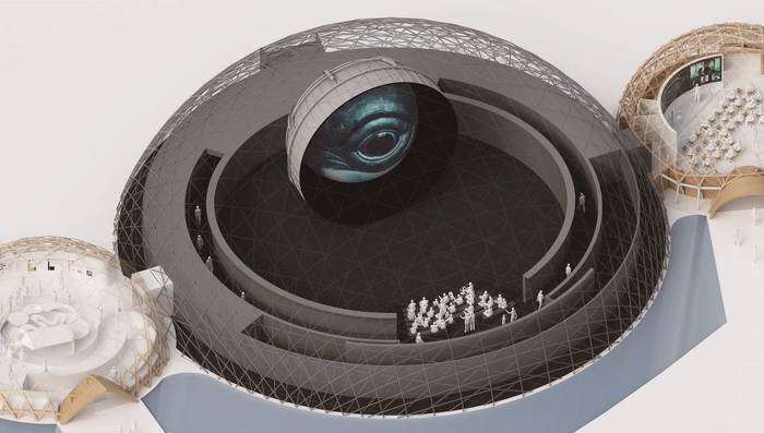 【ドームB】シアター式の空間で圧倒的な映像を視聴することにより、来場者の意識変容を促します。