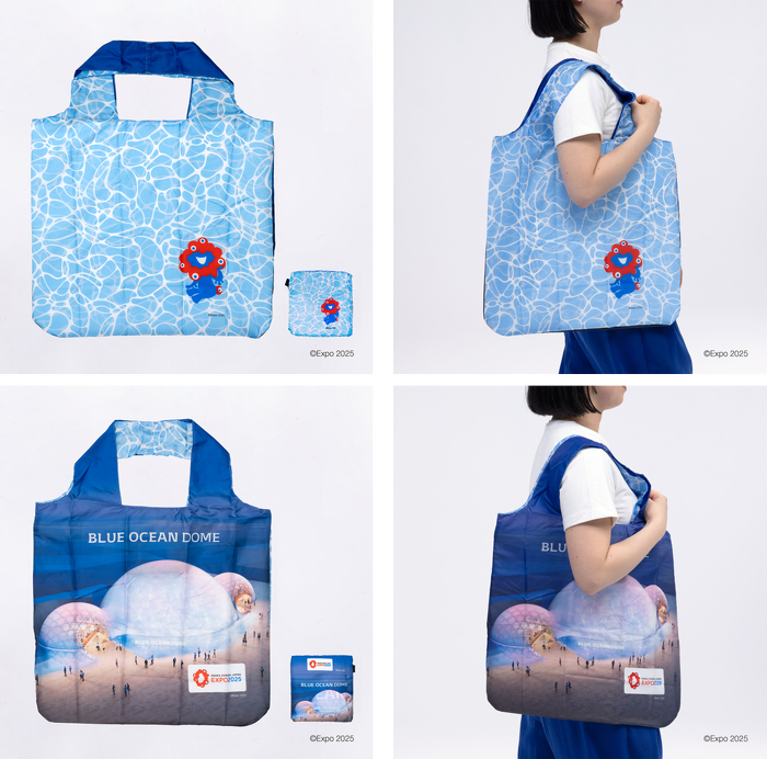 今回のエコバックは、海洋資源の持続的活用と海洋生態系の保全をテーマとしたNPO法人ZERI JAPANのパビリオン〝BLUE OCEAN DOME“と、大阪・関西万博公式キャラクター”ミャクミャク”のデザインをリバーシブルに楽しめるエコバッグです。