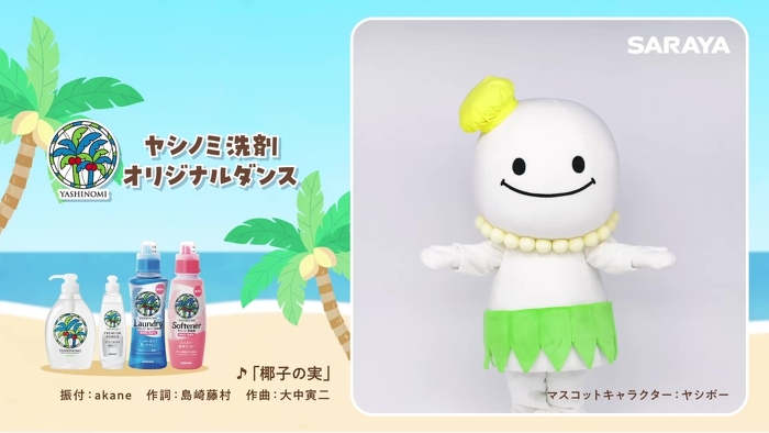 ヤシノミ洗剤のオリジナルキャラクター「ヤシボー」の可愛らしいダンスにもご注目ください。
