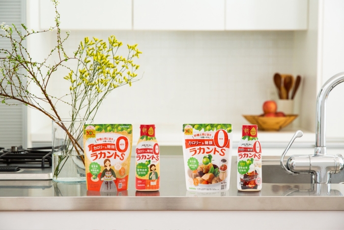 自然な甘みで健康をお届けする植物由来甘味料「ラカントS」は、1995年に誕生し今年30周年を迎えました。ウリ科の植物「羅漢果(らかんか)」から抽出した「高純度 羅漢果エキス」と、トウモロコシ由来のブドウ糖の発酵から作られる甘味成分「エリスリトール」、2つの素材から作られた日本で初めてのカロリーゼロの甘味料です。
