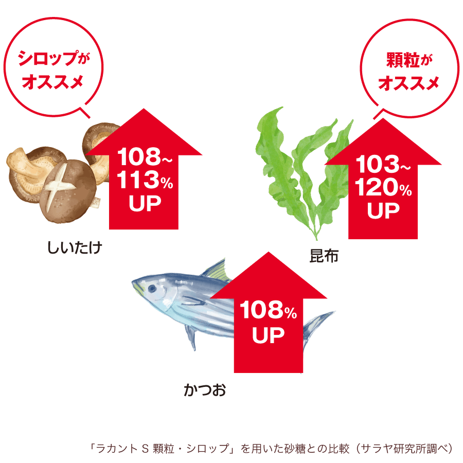 和食料理にも使いやすく、砂糖の代わりにしいたけ・かつお・昆布の出汁とあわせて使用することで風味を引き出し※1、料理がさらにおいしく仕上がります。