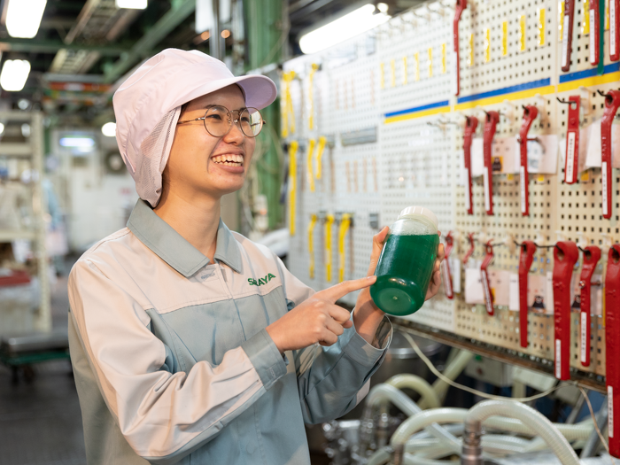 液調製の課員の教育計画・見直し、文書見直し・作成、動画マニュアルの作成などを行っています。また、生産本部全体で取り組んでいる職場環境改善・作業改善活動も積極的に参加しています。
