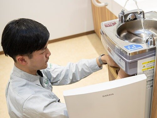 お客様にサラヤ商品を末永く安心して使用していただけるよう、主に機器のメンテナンスを行っています。技術サービス部はサラヤの中でとても重要な役割を果たしていると思います。メンテナンスだけでなく、お客様のもとに足を運び、現場のニーズを探求し、サラヤ商品や機器更新の案内をします。