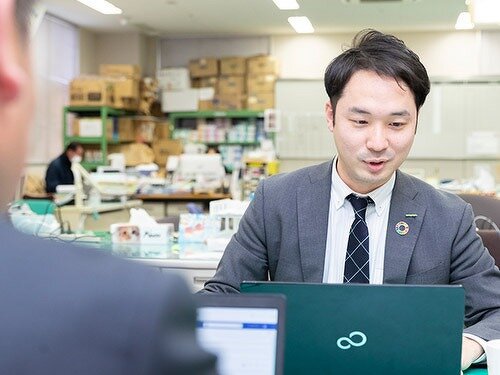 近畿支店では、2020年9月に営業所の改装が終わり、フリーアドレスになりました。今までは、自分のデスクがあり、毎日同じ場所で仕事をしていましたが、現在は、大きなデスクを、みんなで共有し、毎日座る席が自由です。席を変えて、気分転換しながら仕事ができます。社内の雰囲気も良く、たまには冗談を言いながら笑顔で仕事をしてます。