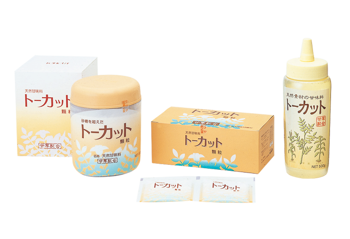 様々な天然素材を試し研究を重ねた結果、薬用効果や甘味が古くから知られる甘草(かんぞう)にたどり着きました。そして1984年10月、業界に先駆けて自然派素材を使用した低カロリー天然甘味料「トーカット」を発売します。