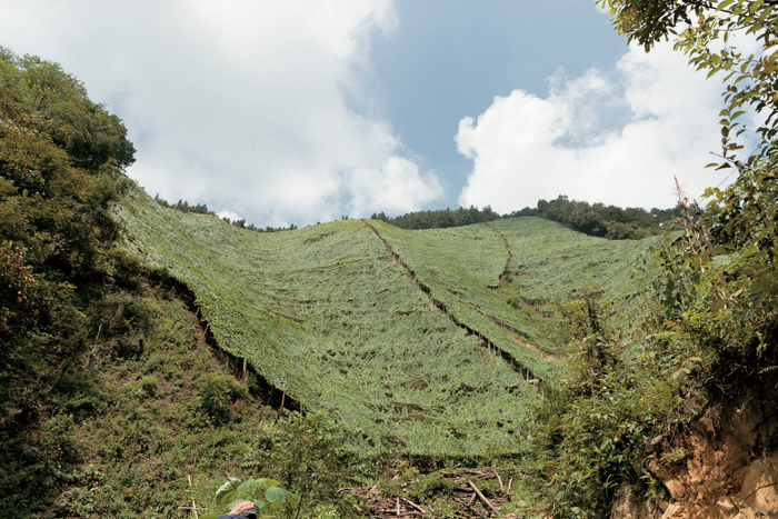 山の斜面で栽培される羅漢果。世界の羅漢果の90%は桂林で栽培されていると言われています。