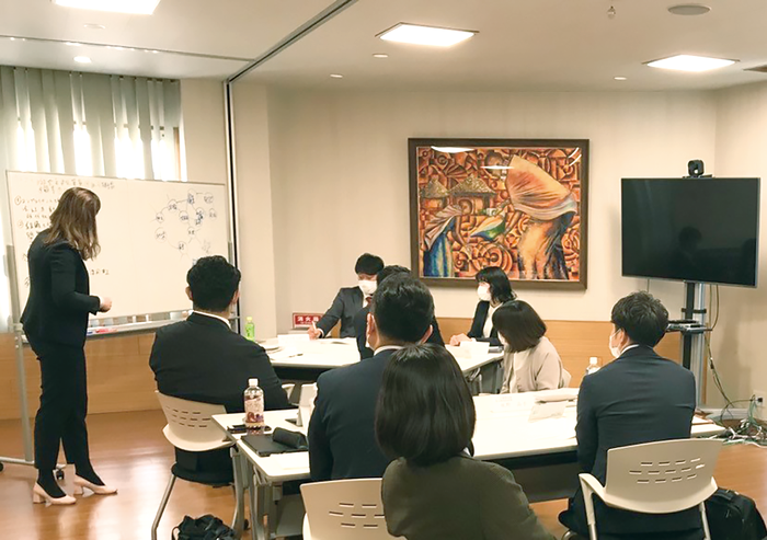 「主体性」の醸成をコンセプトに、ビジネスの基礎や、サラヤで働くうえで大切な価値観と目的思考を持ち、正解のない世界で最適解を導くことのできるプロ人材として飛躍していくための土台を作ります。