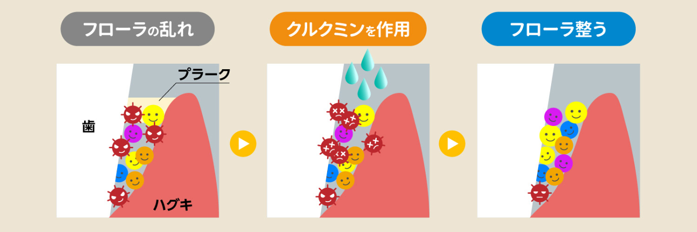 フローラが乱れた口腔内にウコンエキス(クルクミン)を作用