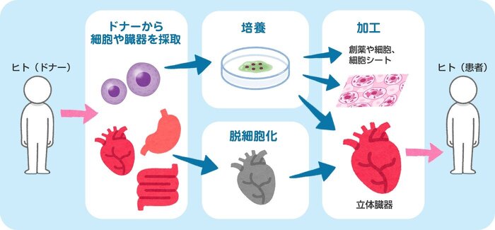 再生医療とは、病気やけがで失われた器官や機能を、人体が持つ細胞や再生能力を利用して治療する医療のことです。医療機器や医薬品に頼ることなく、失われた体の一部や機能そのものが回復するため、既存の医薬品では治療が難しいものや、治療法が確立されていない疾病に対して、新たな治療法となる可能性があります。