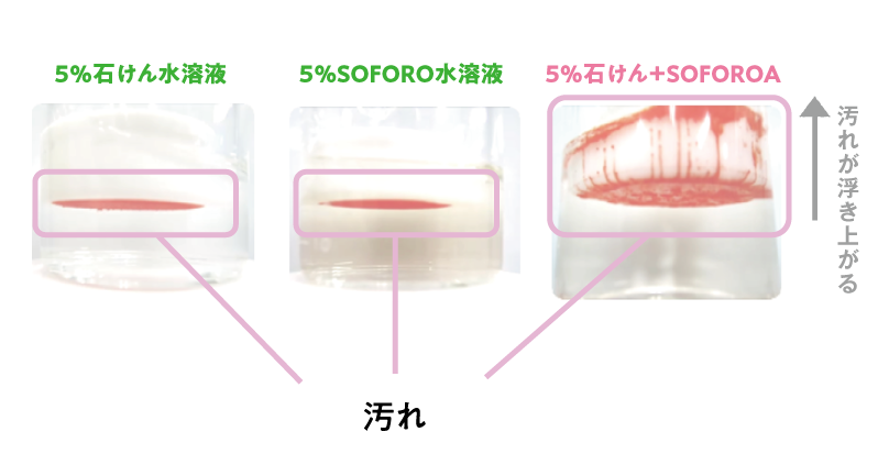 装置:ターゴトメータ―石けんだけや、ソホロだけでは落とすことができなかった汚れに対して、組み合わせて使用することで、洗浄力を高めることが分かっています。