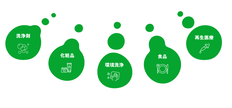 化粧品、環境洗浄、食品、再生医療にと、可能性は広がっています。